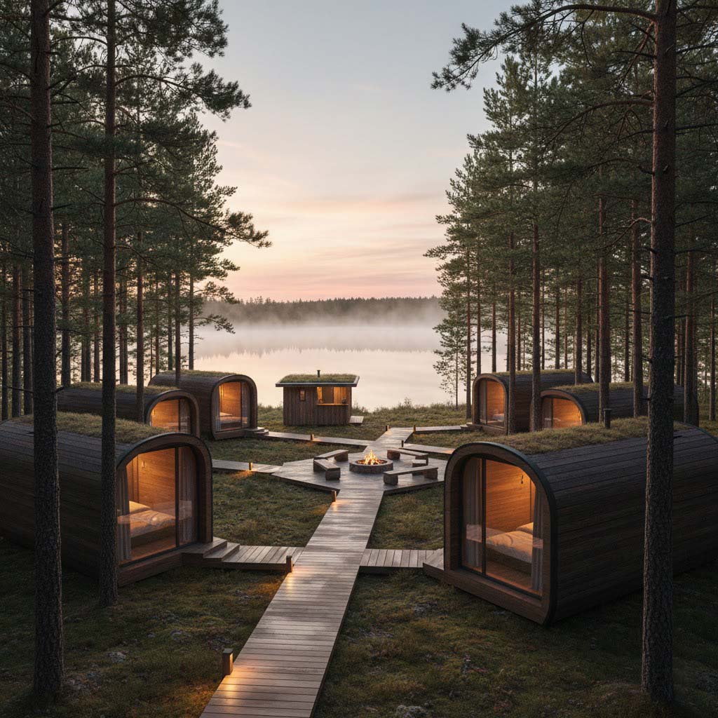Ниже разберём, как выбирать участок под глэмпинг и капсульный отель, какие нормативные барьеры реально мешают, сколько стоит капсула и инфраструктура, и как считать окупаемость без самообмана.